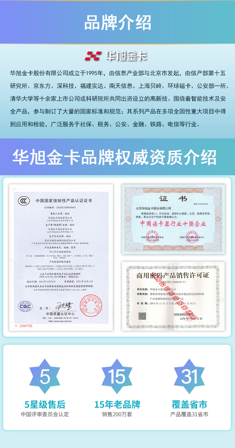 (*由于產品升級或其他原因,華旭身份證閱讀器產品實際參數有可能變更,以實際產品為準。本文中的所有陳述、信息和建議也不構成任何明示或暗示的擔保)