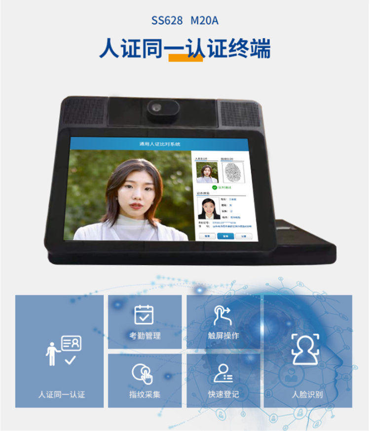 神思SS628-M20人證同一認證終端可以讀取身份證信息,通過人臉識別,對于人臉做一個人證比對,是一