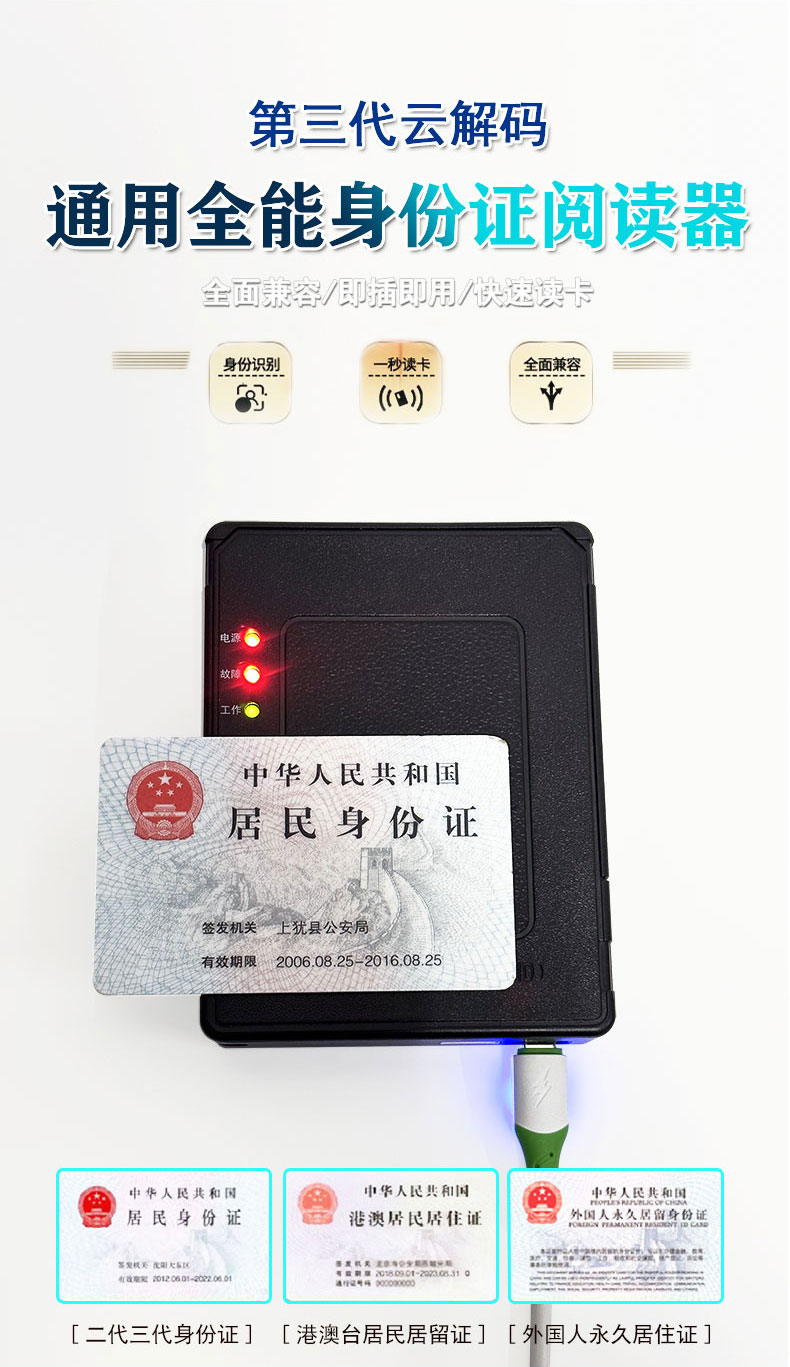 云解碼身份證讀卡器身份證閱讀器在線式讀取身份證信息eid讀卡器