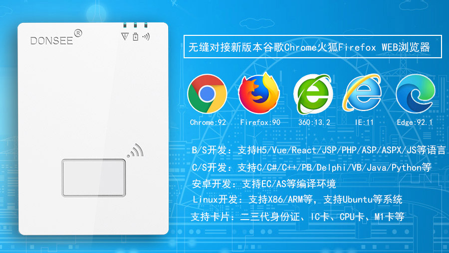 明創(chuàng)智慧是專為智能身份證識(shí)別系統(tǒng)開(kāi)發(fā)定制的一款免驅(qū)多功能智能卡讀寫(xiě)器,具備身份證信息脫機(jī)讀取、身份證物理ID讀取、IC卡信息讀取、電子標(biāo)簽讀取等功能,廣泛應(yīng)用于公安、醫(yī)療、人社、銀行、建筑行業(yè)、房地產(chǎn)、公寓、酒店、物流、教育、考試報(bào)名等行業(yè)實(shí)名制系統(tǒng)。
